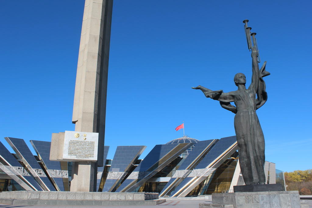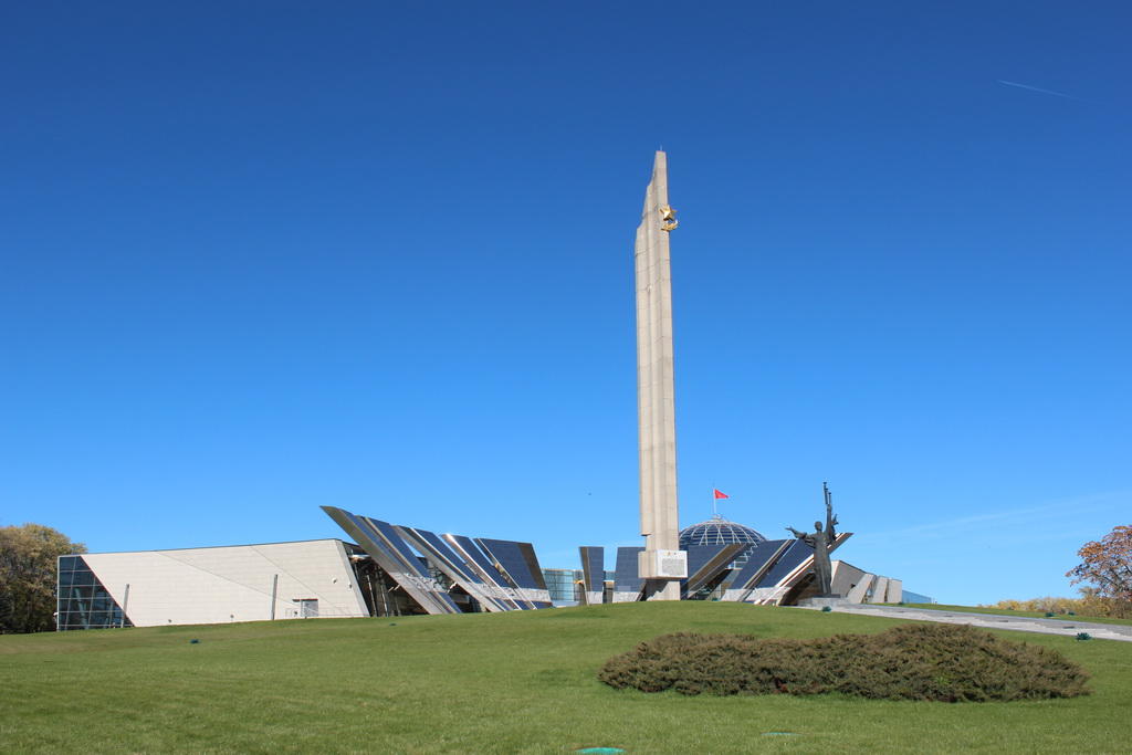 Новым зданием и обелиском «Минск - город-герой» составляется органичный архитектурный ансамбль. Главным фасадом музей символизирует лучи салюта Победы. Каждый из них украшен скульптурными рельефами о военных событиях.