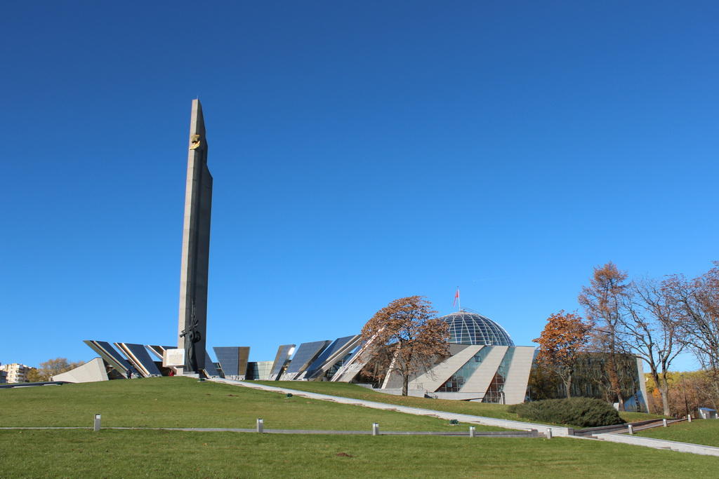 Новым зданием и обелиском «Минск - город-герой» составляется органичный архитектурный ансамбль. Главным фасадом музей символизирует лучи салюта Победы. Каждый из них украшен скульптурными рельефами о военных событиях.