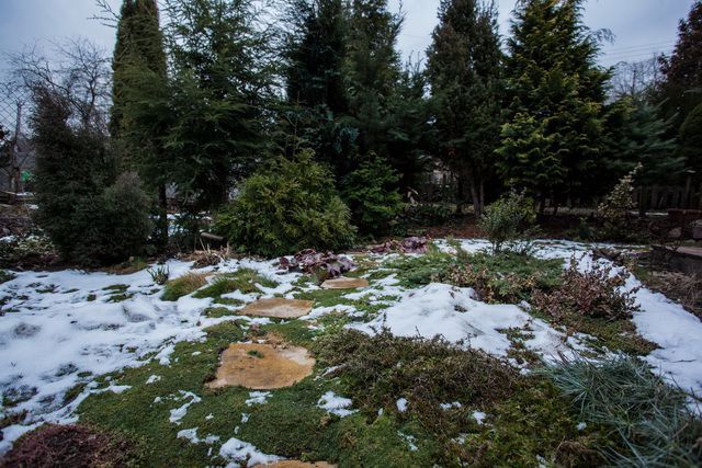 Вечнозеленый сад минчанина Михаила Малаша особенно ярко выделяется зимой в сочетании со снегом.